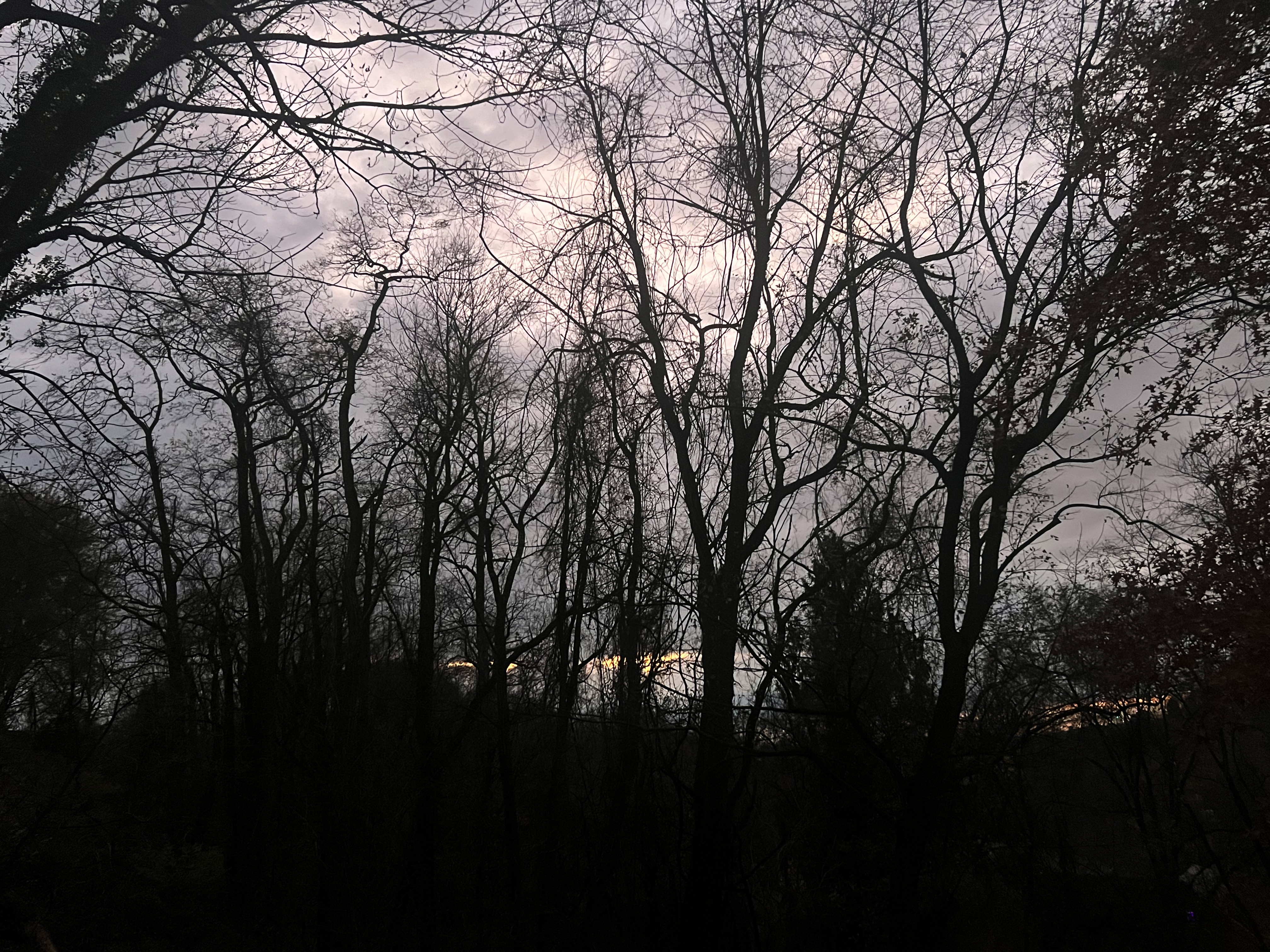 At 4:30 I make coffee. Taking the dog outside, we are met by a large buck about 20 feet from the door. All three of us freeze in place. I know he will outlast me in this staring stand-off. I look away, not wanting to be percieved as a threat. The dog growls softly, we slip back into the warm kitchen and hear the buck bound quickly away, snapping branches with his strong gallop. Watchful now, we walk softly, snow crunching and breath rising in the darkness—the day begins.