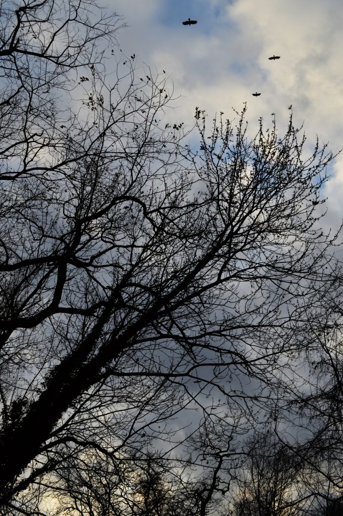 The moments are fleeting, quick and also slow, slick, thick with anticipation and the promise of the coming winter. A fluttering of huge wild wings escape into the fog and disappear behind dark branches; perhaps to return again during the day when it clears, or perhaps to become a memory floating softly like the red leaves onto the ground—one of many, lost under the impending first snows.