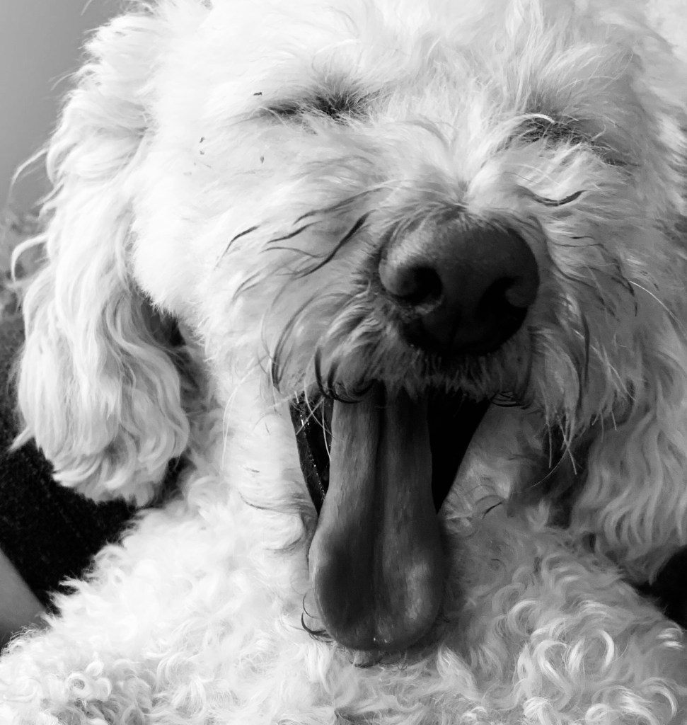 I see my dog in the window and open the door to the smell of brewing coffee—a welcoming smell and a welcoming bark.