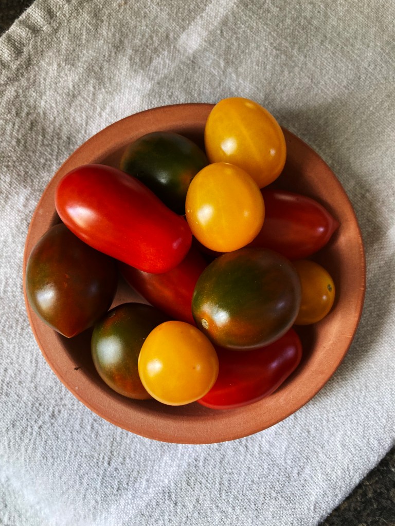 enough food—bowls of berries and platters of cheese, black beans, red tomatoes and good chocolate