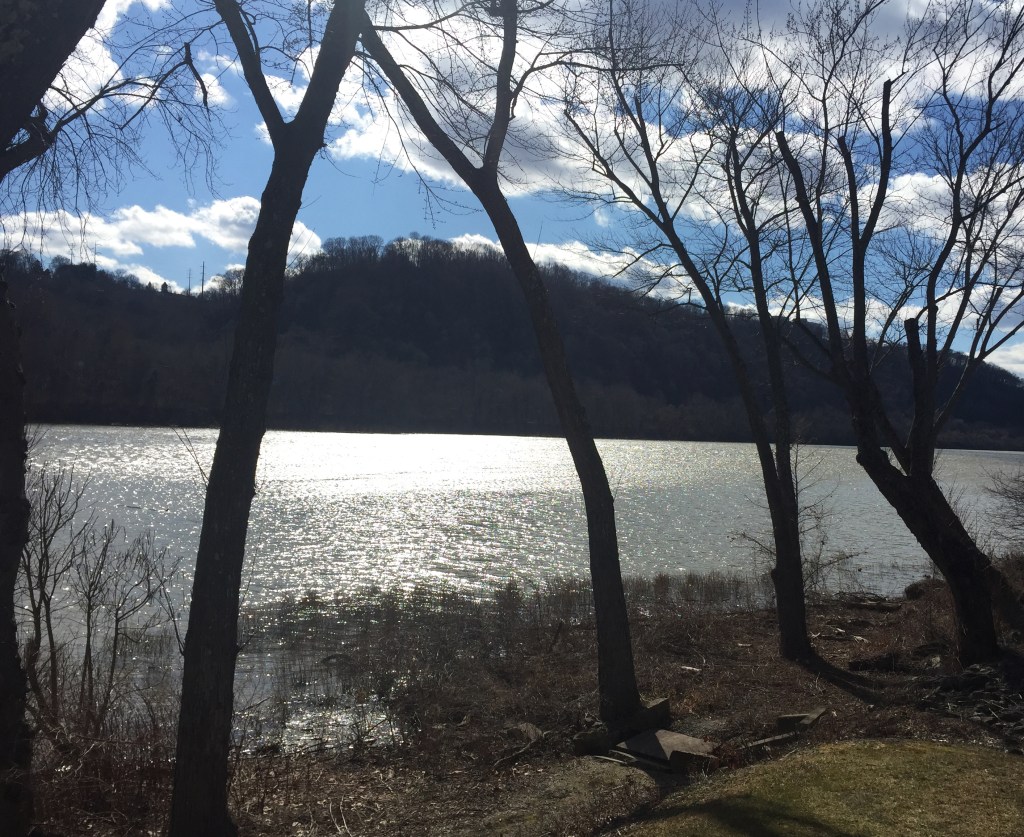 On a mid-September morning, we took a walk along the river. It was a southwestern Pennsylvania grey day, a black and white morning, a monochromatic mind set. My worries tread on the hamster wheel of thoughts inside of my head, churning, stumbling, exhaustingly futile. In the distance, a great blue heron stands regally, barely recognizable, probably scouting his breakfast. The pup and I watch the water flow towards the city, and experience a strange vertigo for an instant, a letting go, a weightless sensation that passes quickly and momentarily knocks the worries from my mental track giving me enough time to hold onto other thoughts—the soft clouds, the bridge in the distance, the lushness of the trees, the temporary silence. I slow my breathing and pet the pup, “let’s go girl”, I say and walk gently forward.