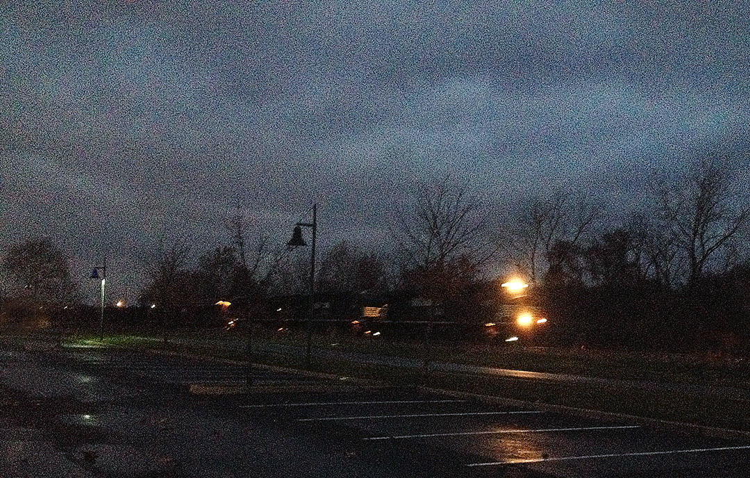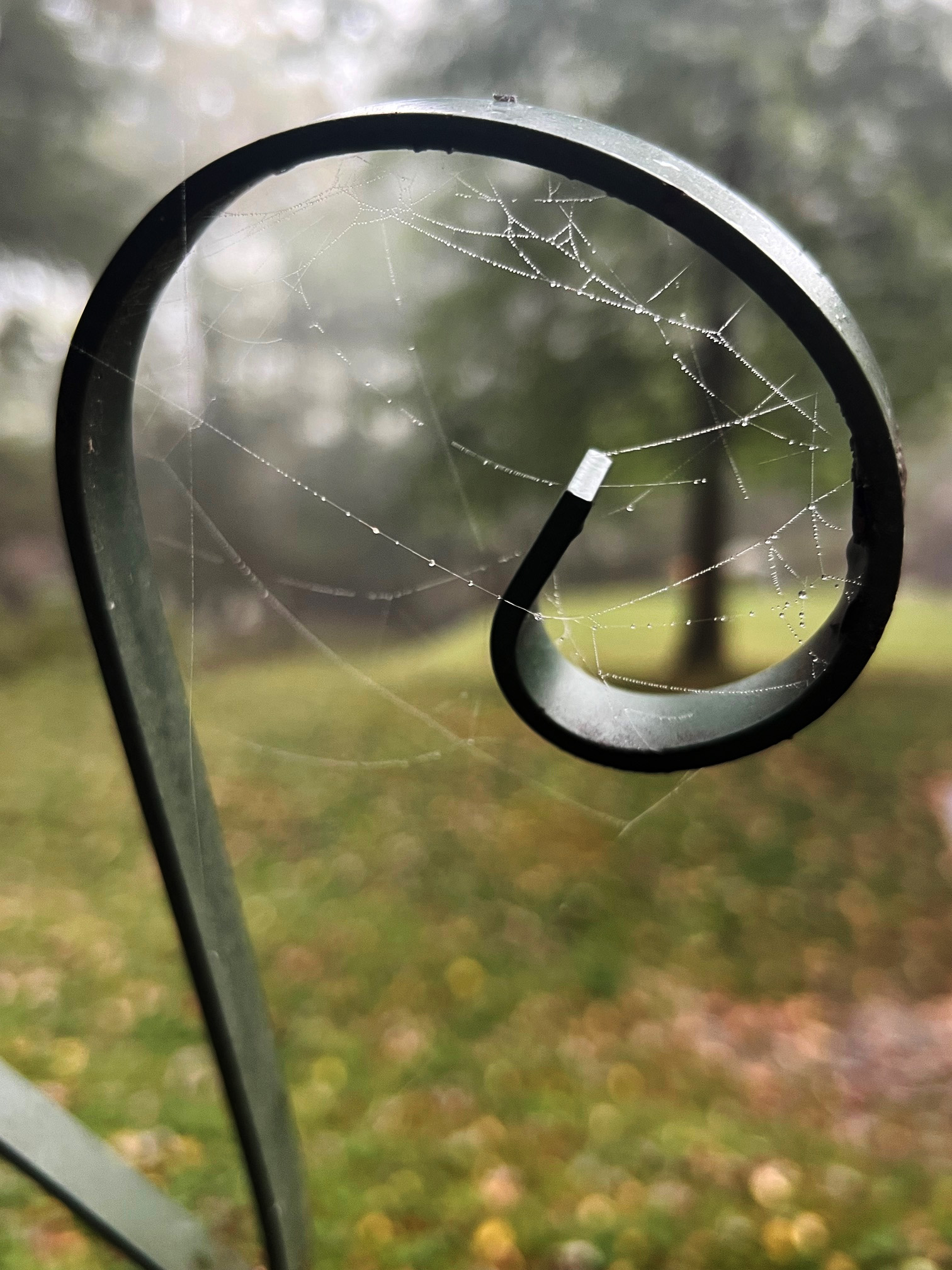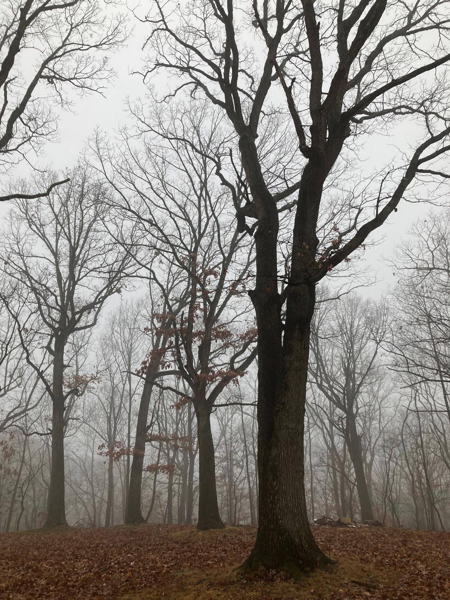 dark evening chill—fog rises from the damp leaves and seeps into our bones, into our exhaled breaths as we