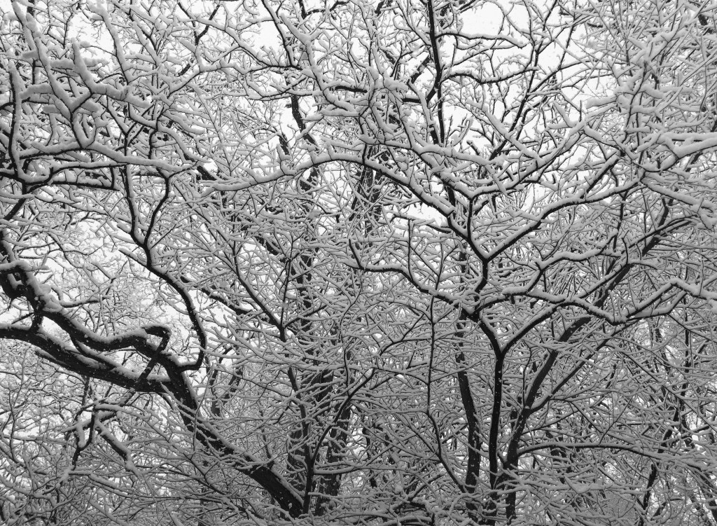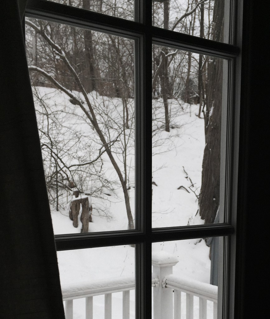 January is proving to be snowy and cold with white skies and treacherous roads. I marvel at the frozen beauty falling in a horizontal slant during a squall or drifting quietly out the kitchen window. My eyes are almost blinded by bright colors inside; I focus gently on softer hues, fairy lights, dried flowers, branches covered in yarn, books on snowflake photographs and these words from Thoreau: